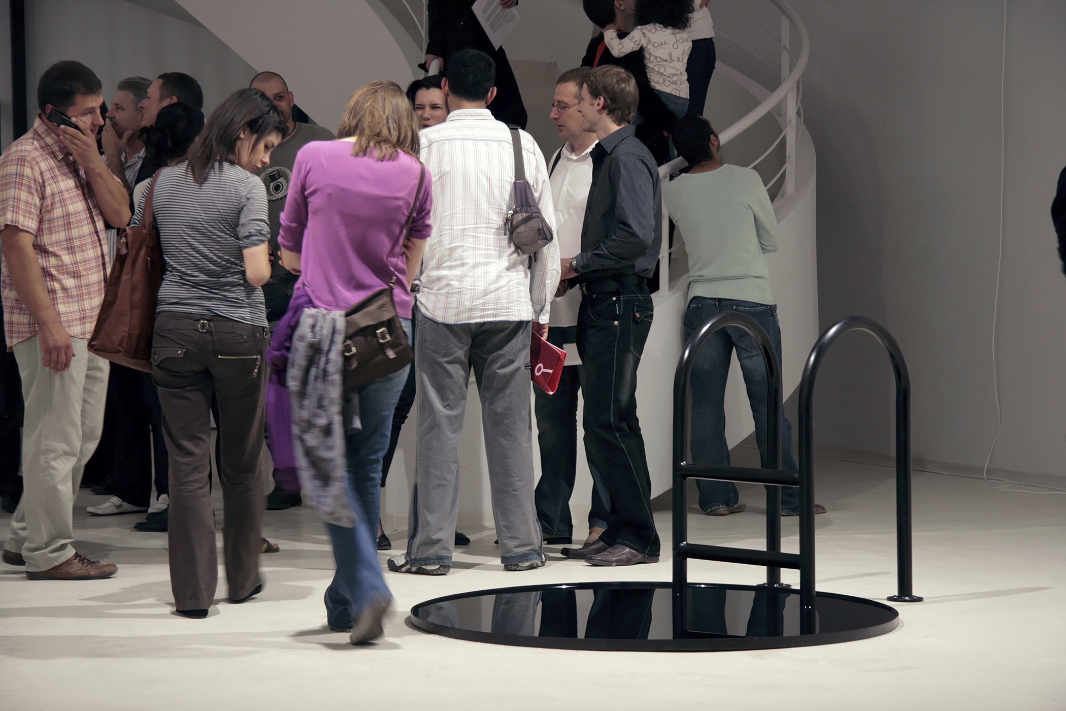 I shall not elaborate on the intensity and amount of exchanging mails with familiar, less familiar, or entirely unfamiliar professionals, all with the aim of acquiring targeted artworks by foreign artists. However, when such contacts turn into a communication chain, they can always be reduced to a basic dualistic pattern. In order to dynamically regulate the concept’s development, it is my great wish to work with yet another curator. Still, due to objective reasons, this wish didn’t come to life completely. A promising start of collaboration with Ana Janevski soon became complicated due to quick, unpredictable developments in our careers and never accomplished, yet the targeted level of intensity. Following the pattern of the exhibition concept each of us, simultaneously, got confronted with two jobs that divided our business and private lives. Hence Ana got split between Warsaw and Zagreb, and my time was divided between Rijeka and Zagreb. As if everything that influenced the development of the exhibition, whether positive or negative, started to duplicate at a certain point, making our plan practically unrealizable, and pushing most of the realization into my hands. However, the ultimate sign that everything is OK has come forth during my first visit to the MMKC gallery space. The sign was a mirroring pair of grandiose spiral stairs, that firmly and elegantly articulate the gallery’s architecture.