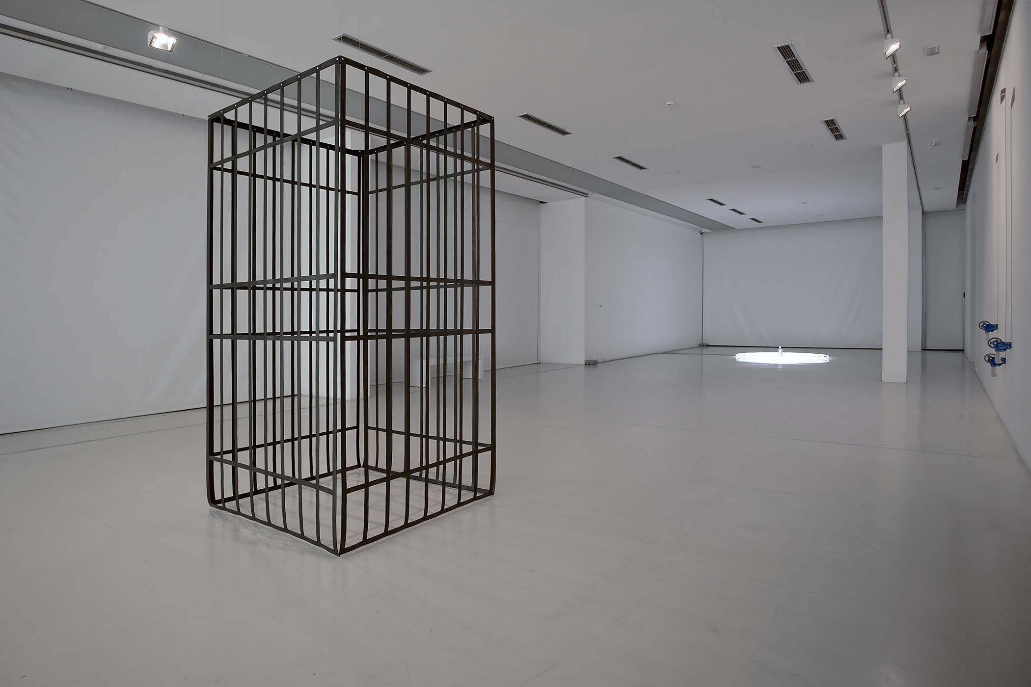 Untitled, 2010) have an outspokenly paradoxical character. By selecting materials (rubber, lead) that are visually close to the original object (metal cage) or phenomenon (human shadow), the artist has provoked a detachment in perception. The expected hardness of a cage has been replaced through the softness and pliability of rubber, whereas the shadow, essentially immaterial and changeable, has been