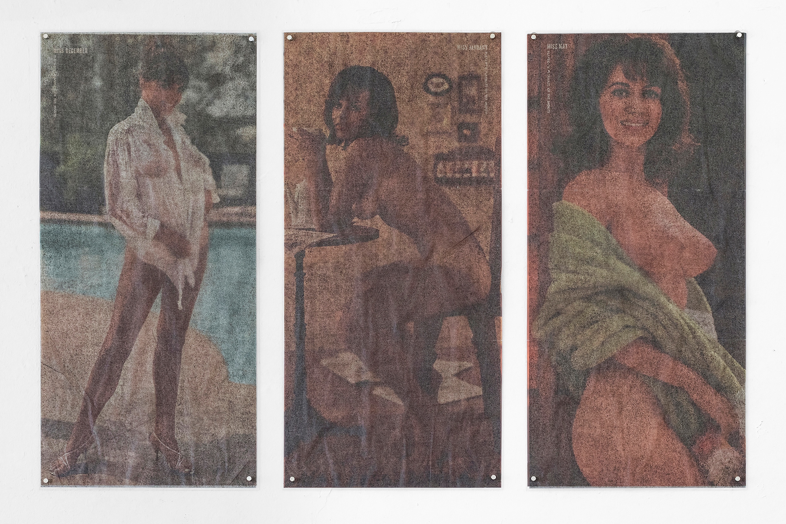 Playboy, combined to form the word VULCANIZER. Yet, as an artist who will never succumb to banality, the choice of centrefolds is deliberate rather than random. Collector’s editions of American