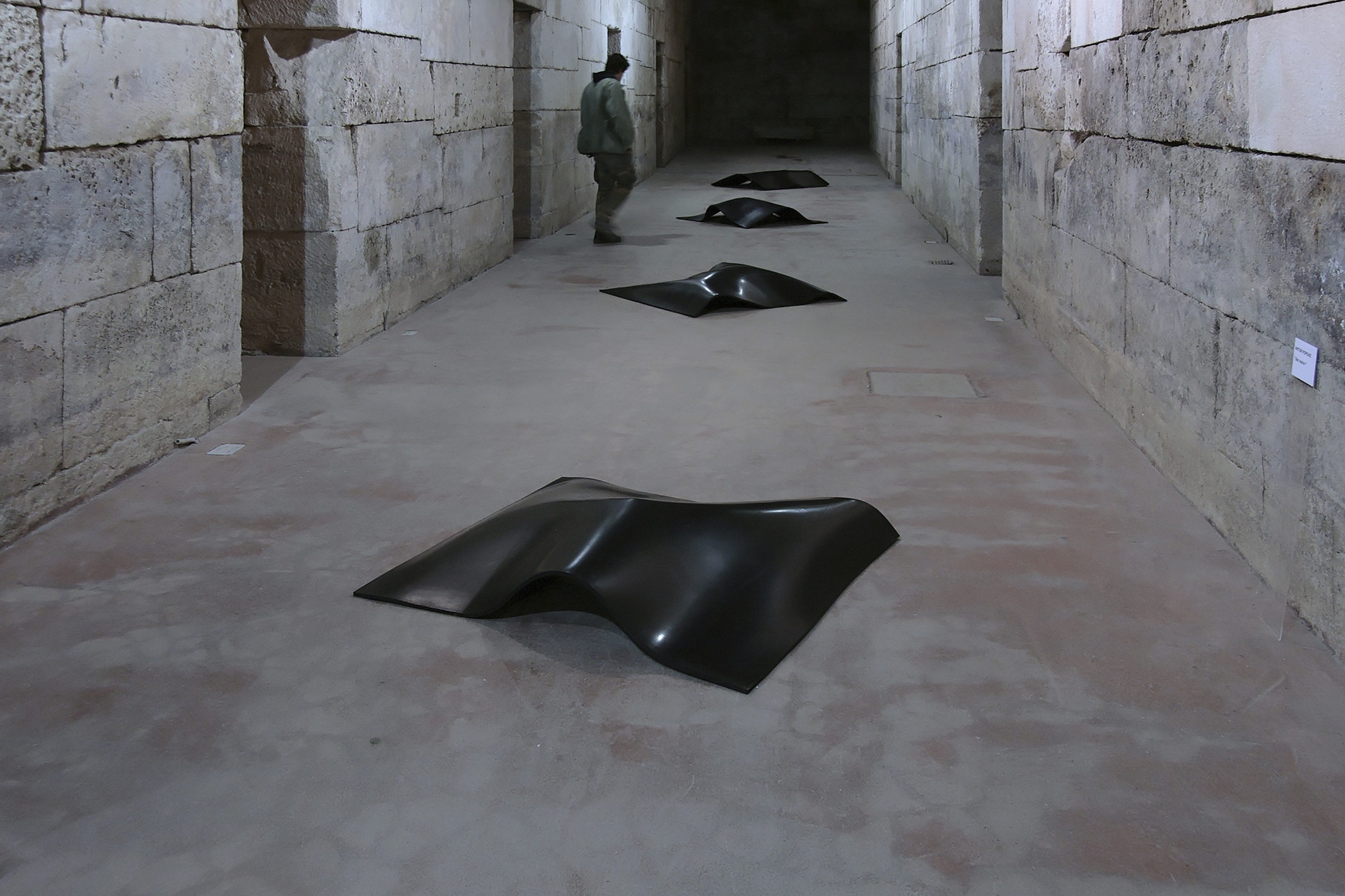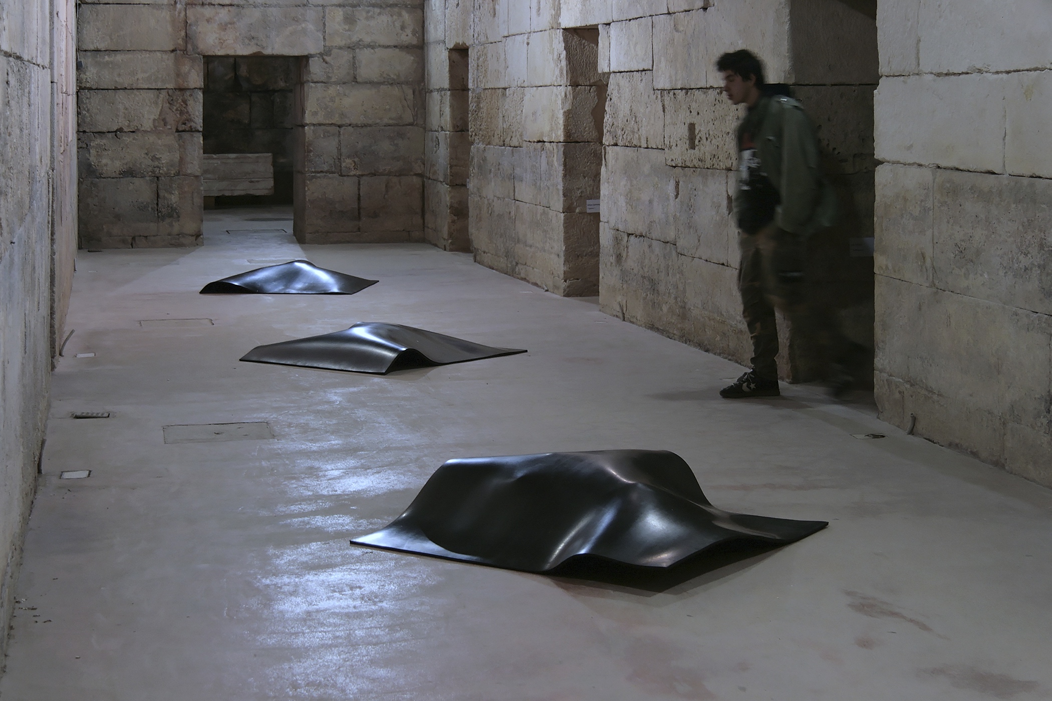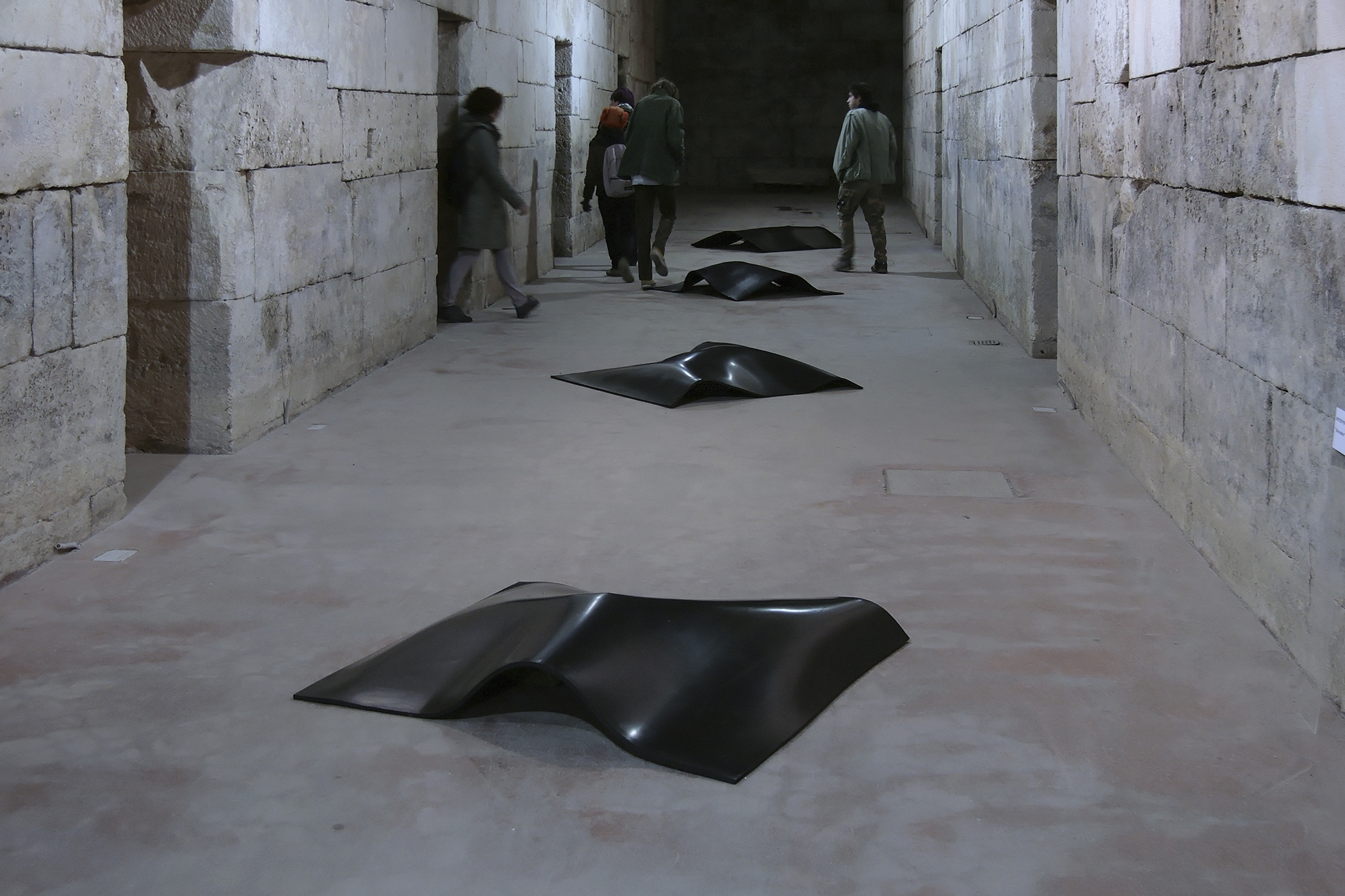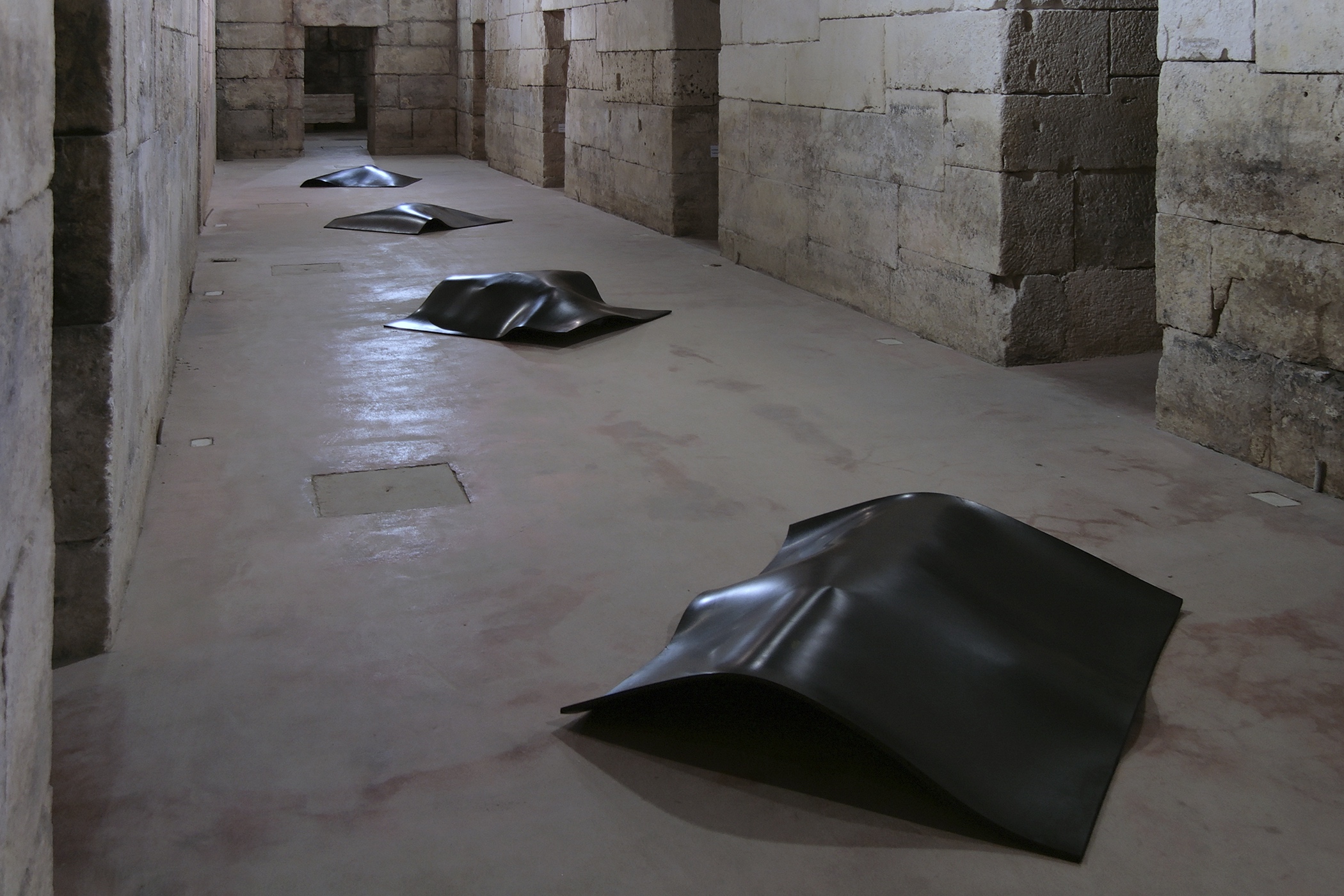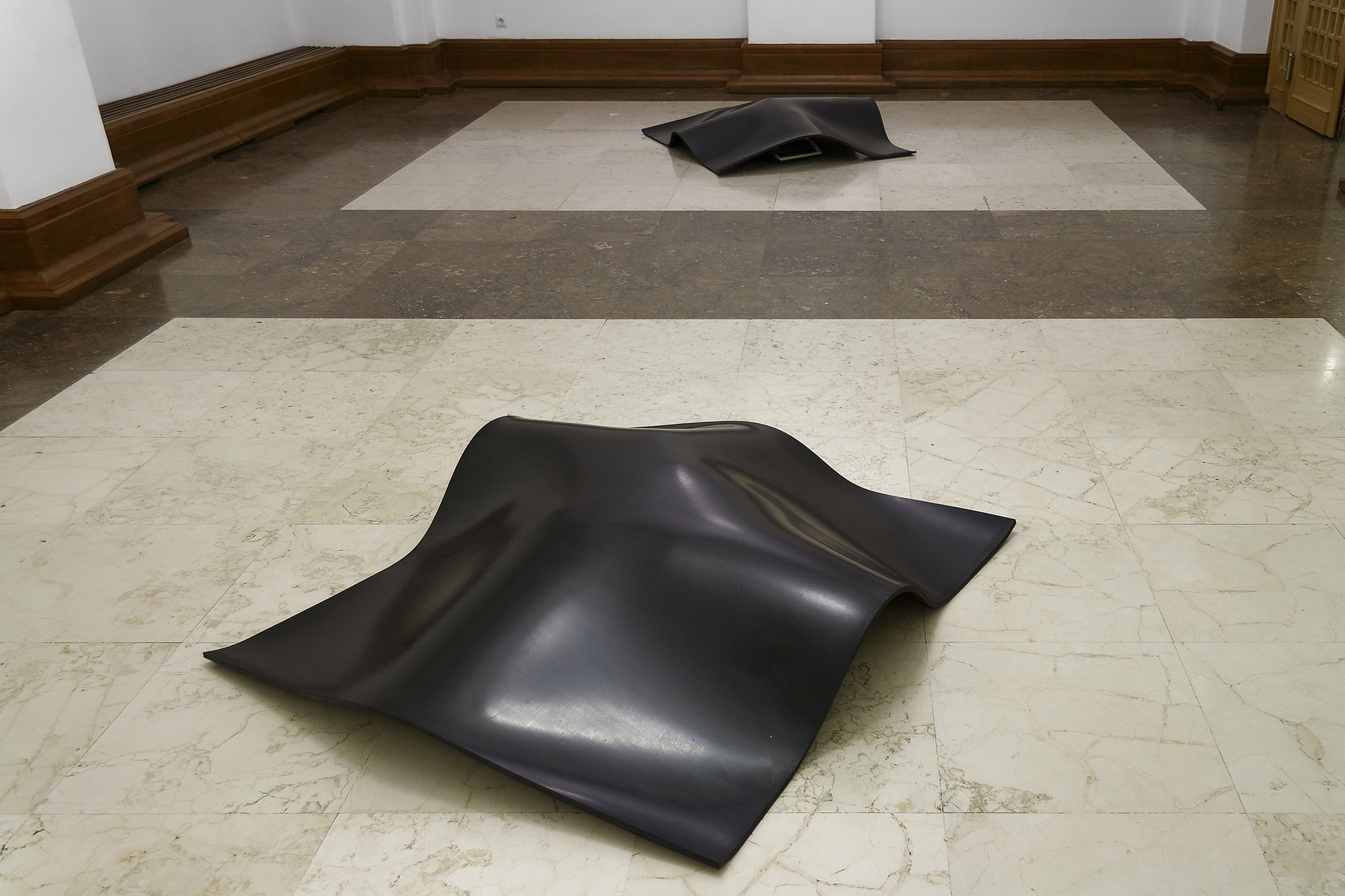 Installations with borrowed everyday objects each covered by a thick layer of rubber were produced in 2007. The focus was on objects, linked both to the spaces as such and to their users. The agent of art was the rubber cover. The selected objects, hidden under identical pieces of rubber, were only vaguely visible, while the observer, aware of the fact that they were exhibited artworks and therefore not to be touched, was left to guess and speculate. The version of the installation, presented on exhibition in Split in 2011, acquires an additional memory code with the choice of borrowed objects. Under the rubber layer, there are objects that were part of the holdings of the former Museum of the People’s Revolution (today owned by the Municipal Museum of Split), which was located in the building of today’s Gallery of Fine Arts in the period between 1980 and 1991. A radio station, an aggregate, and a searchlight covered with rubber constitute an artwork that is both visually and conceptually intriguing. Museum exhibits, laden not only with their primary uses but also with their museum history, with which we are still struggling, give additional meaning to the installation, re-contextualizing it in terms of space and time.