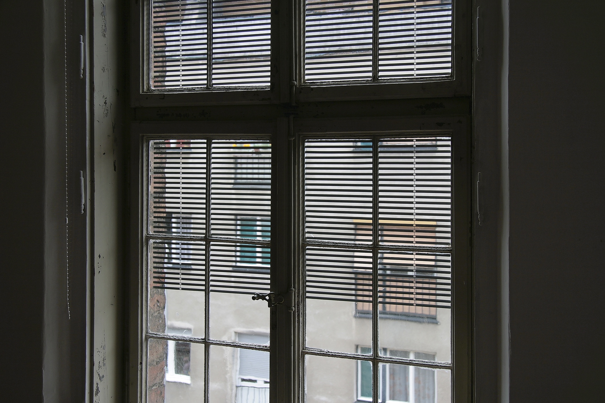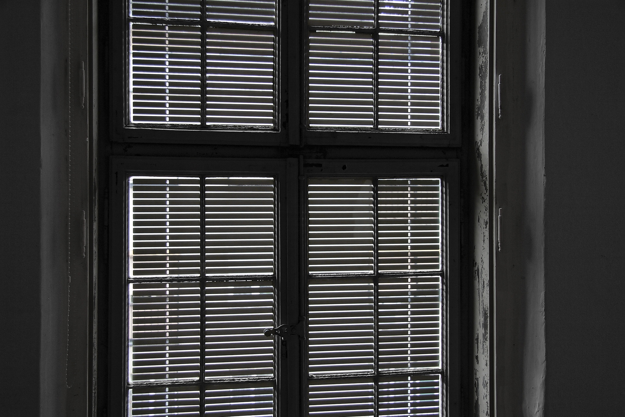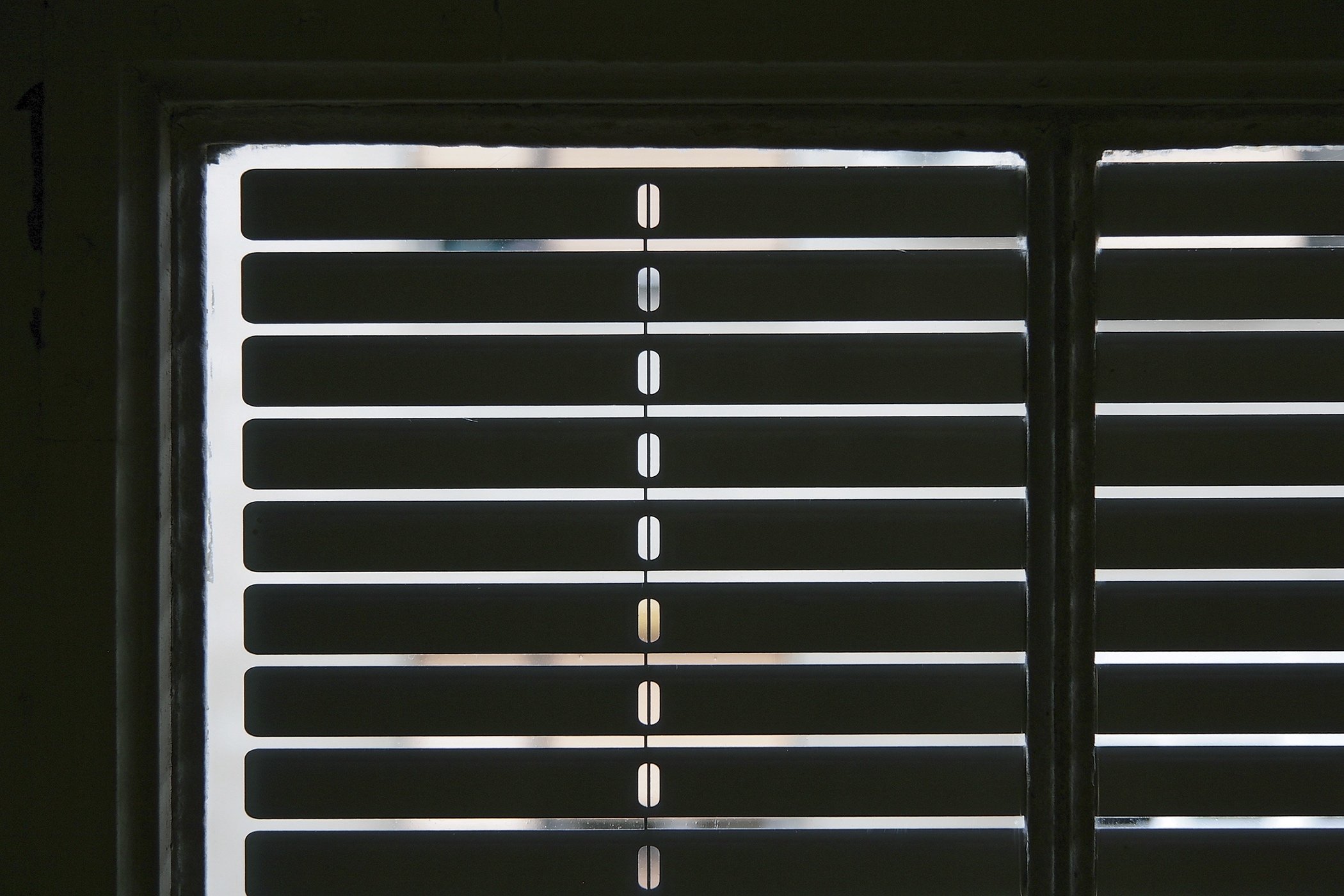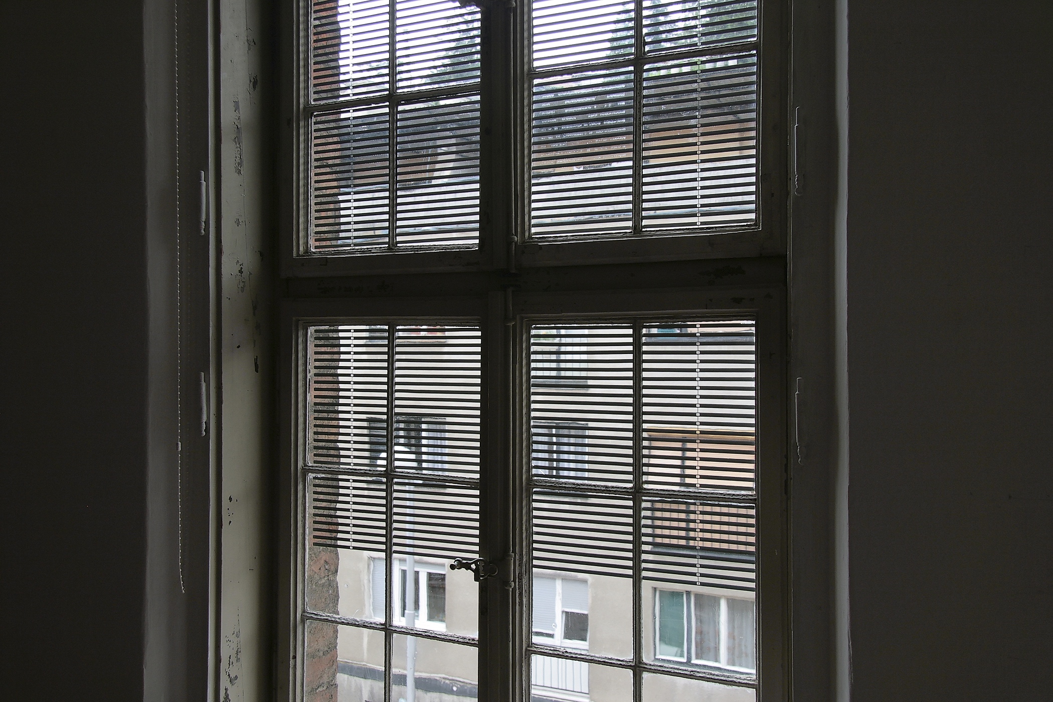 Interventions on the two windows of the exhibition space simulate the outlines of movable office window blinds raised to different heights. A common and movable object is transformed into a stationary contour unsusceptible to the influence of the individual. The shadow becomes imposed, and the window shading is default and immutable.