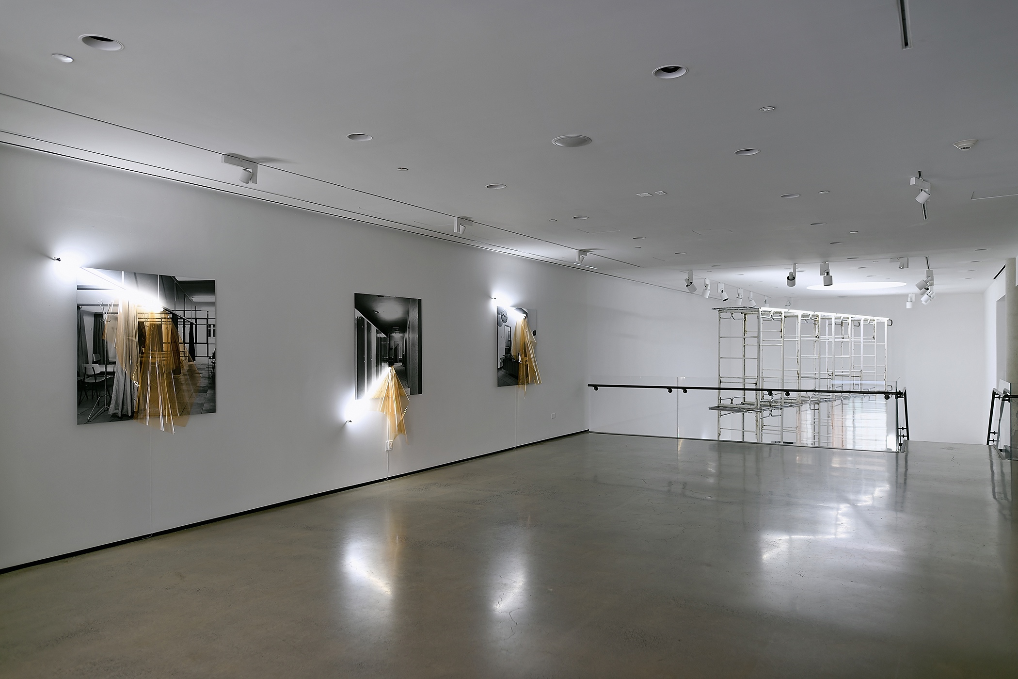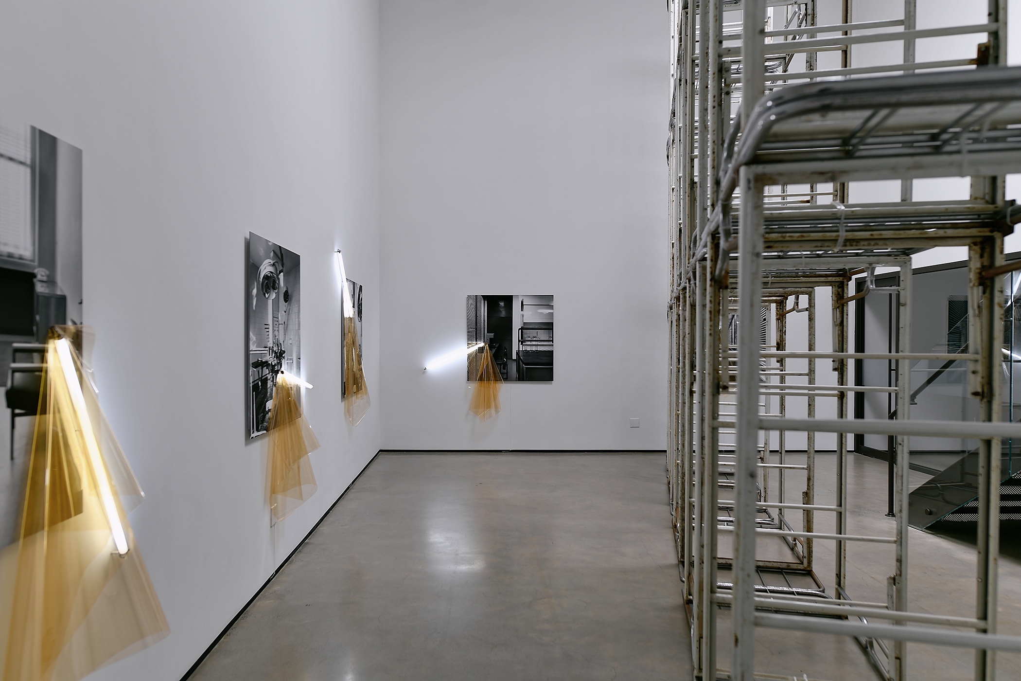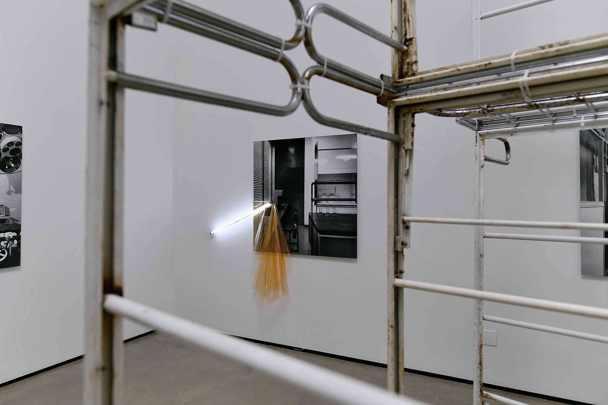 The wall works are hybrids at the intersection between photography, relief, and object. It consists of digital prints of archival photographs of the hospital’s exterior taken in 1965, before the hospital’s inauguration. Each print is mounted on an aluminum board and forms a background for industrial filters for color correction that have been fixed to the photographs with fluorescent light tubes.