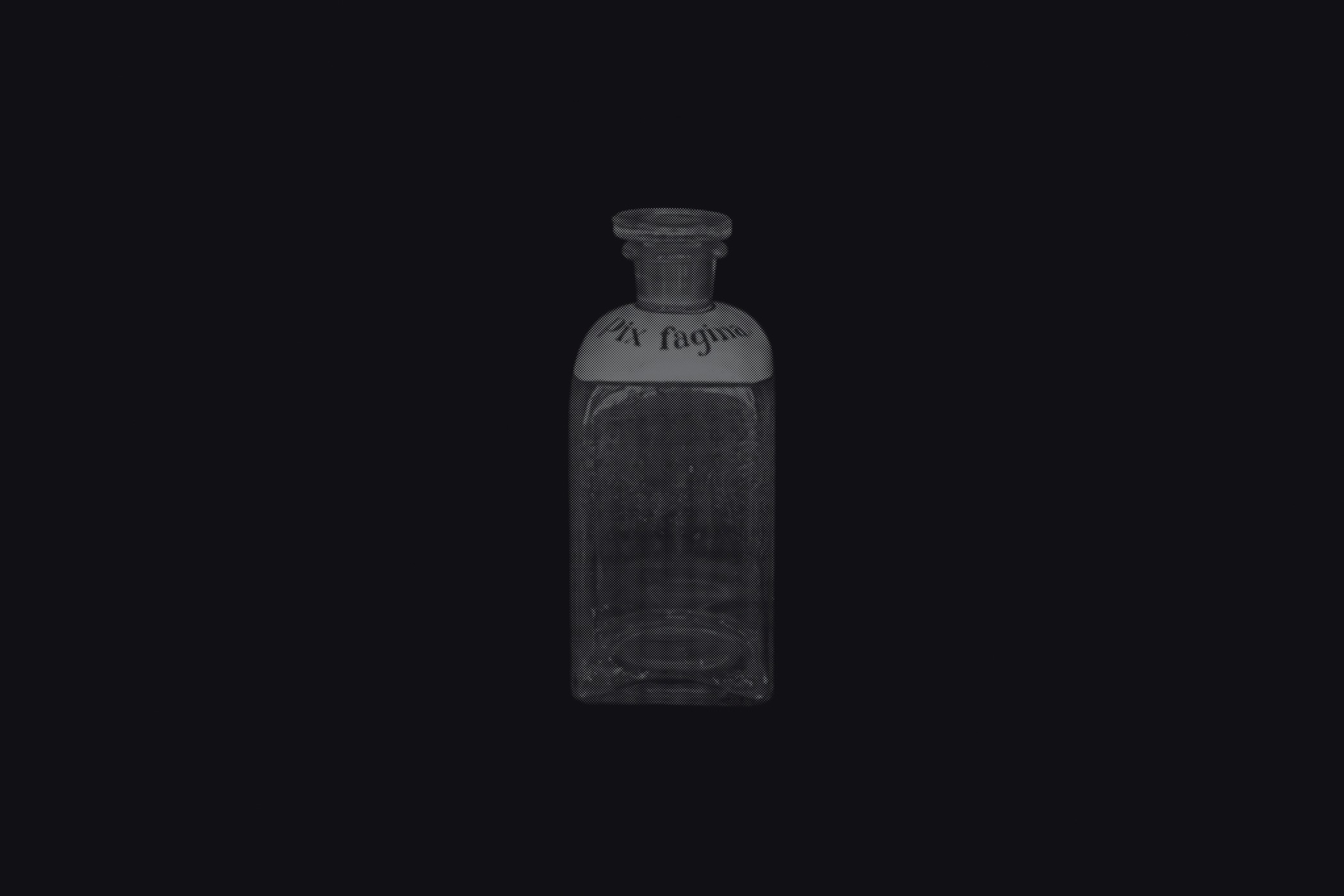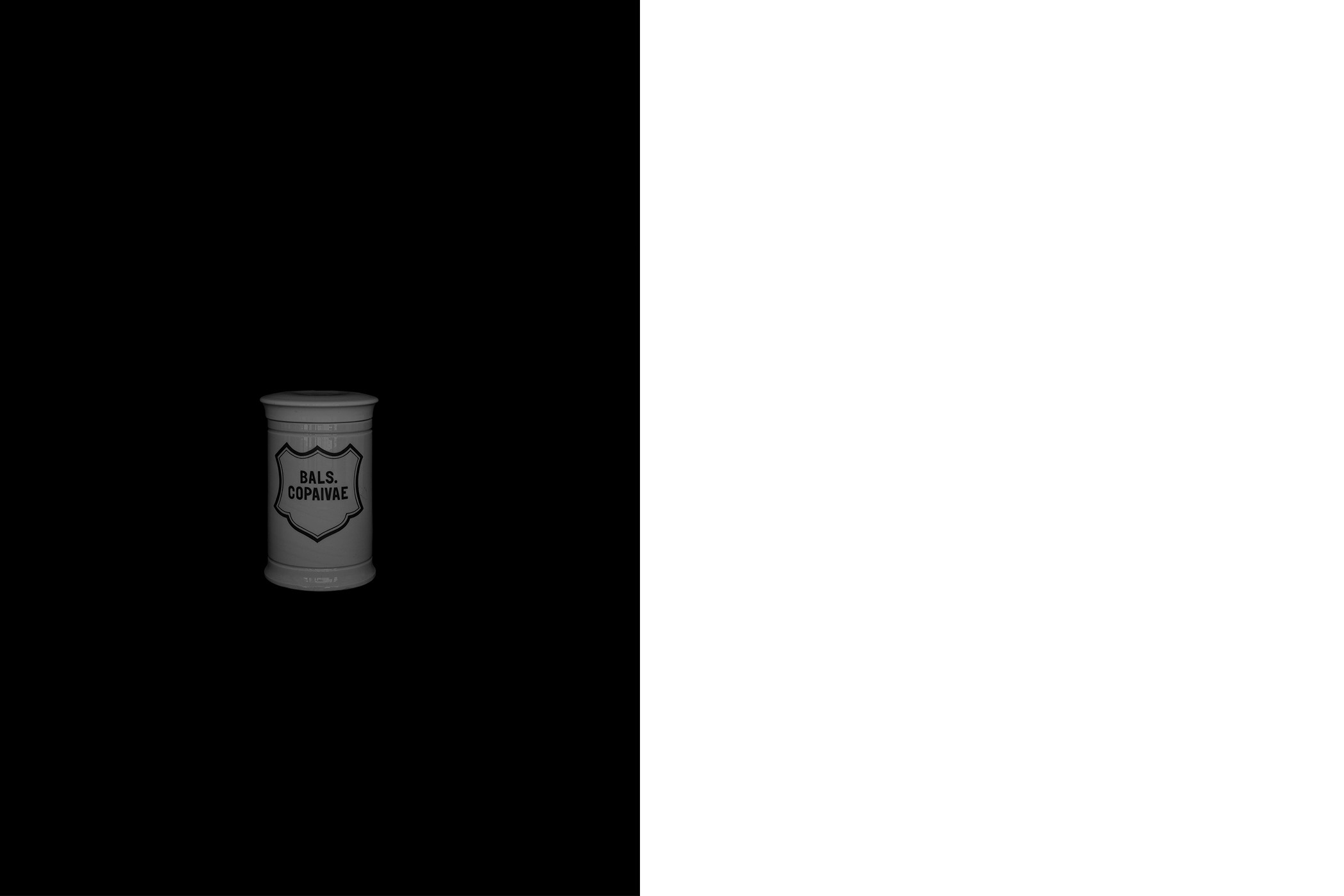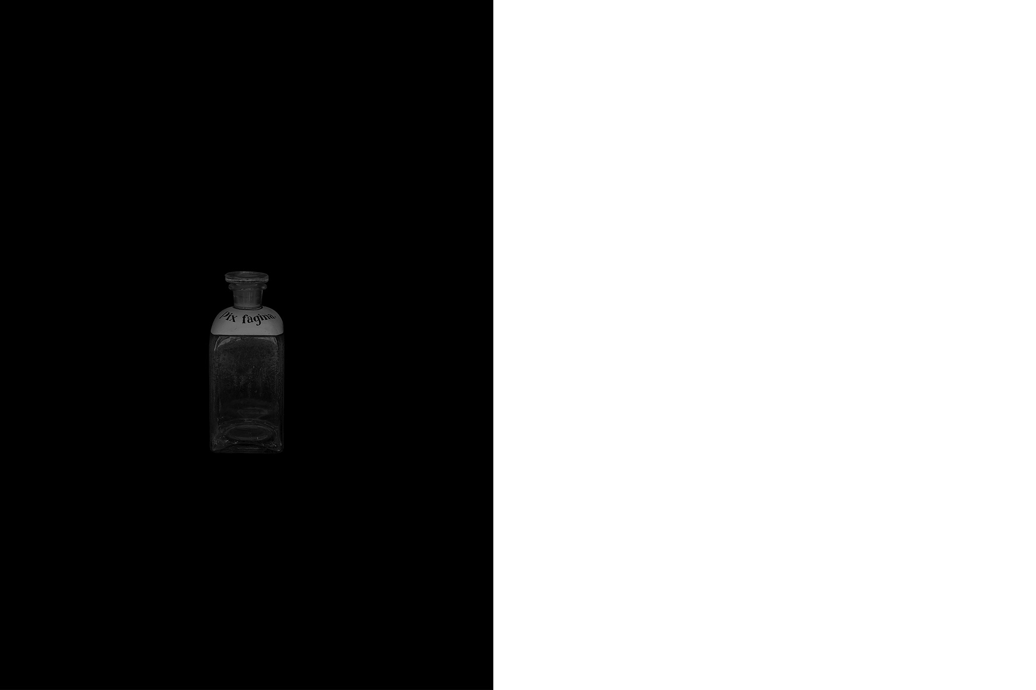 The first series draws from the collection of the Historical and Maritime Museum of Istria, featuring photographs of ceramic and glass apothecary jars transferred onto black paper using silkscreen printing. Instead of traditional ink, the prints were made with powdered active pharmaceutical substances, resulting in faint, almost ghostly images that echo the fragility and ephemerality of the source material.