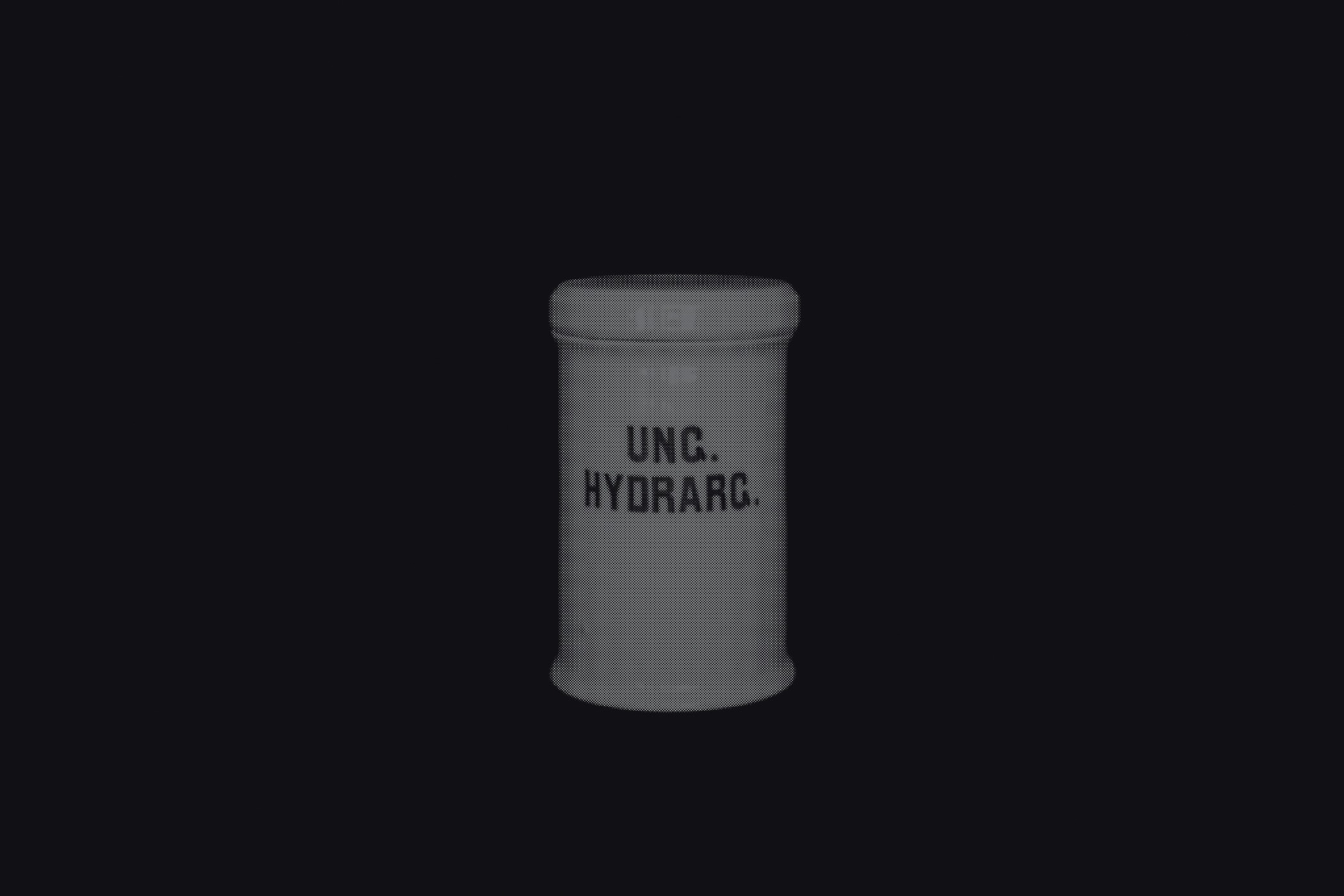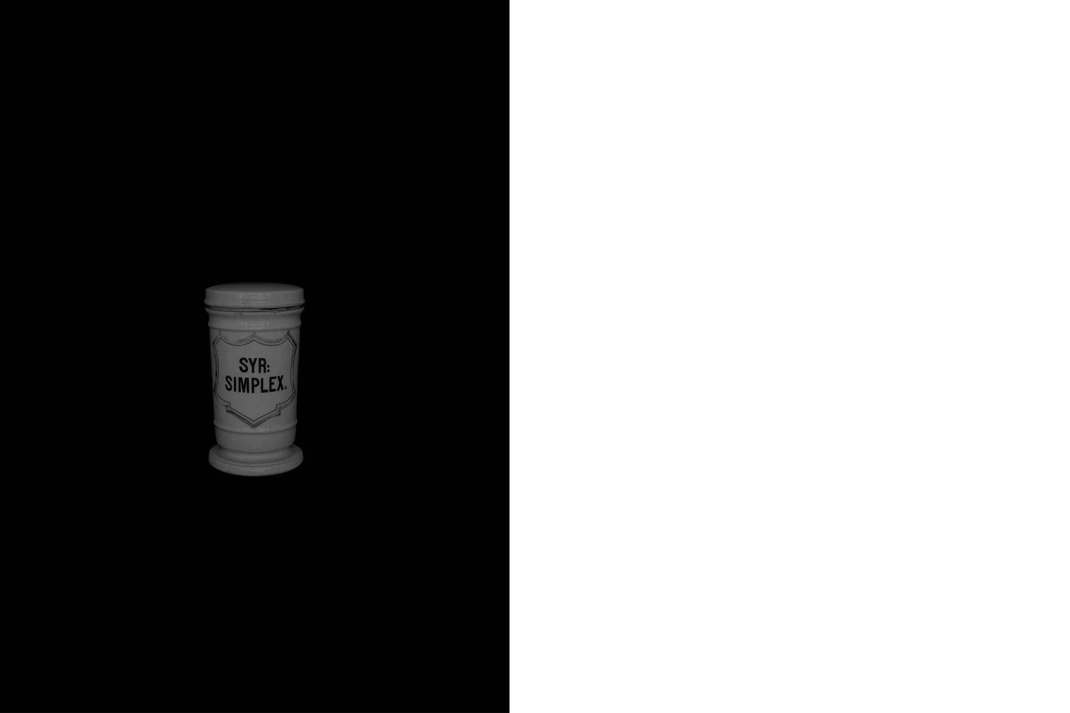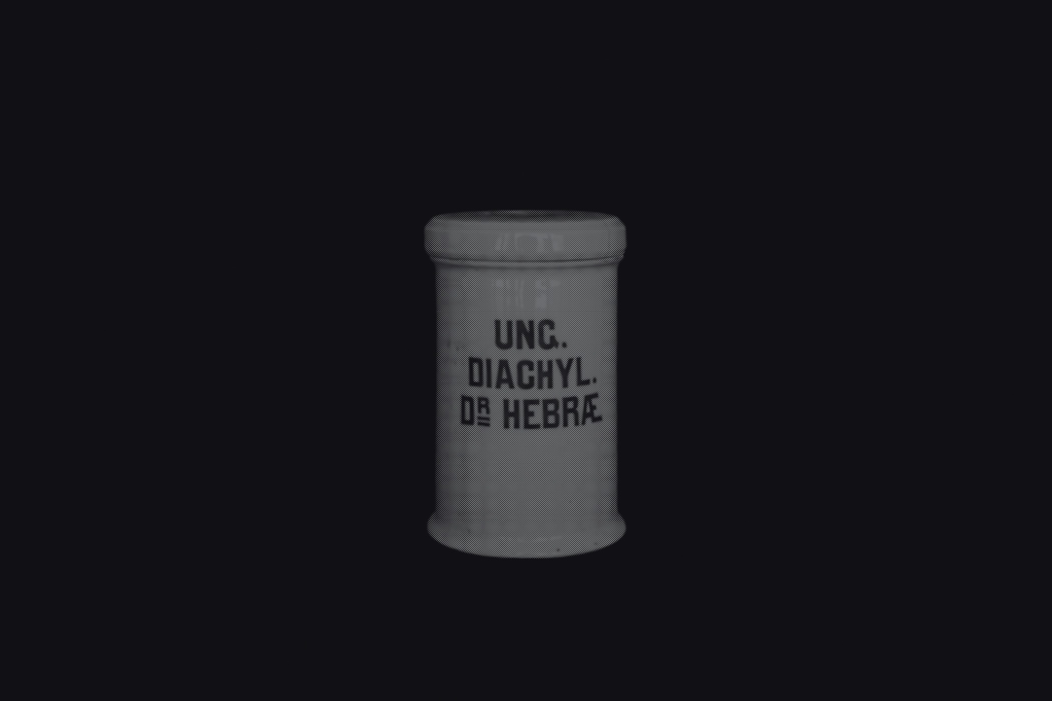 The first series draws from the collection of the Historical and Maritime Museum of Istria, featuring photographs of ceramic and glass apothecary jars transferred onto black paper using silkscreen printing. Instead of traditional ink, the prints were made with powdered active pharmaceutical substances, resulting in faint, almost ghostly images that echo the fragility and ephemerality of the source material.