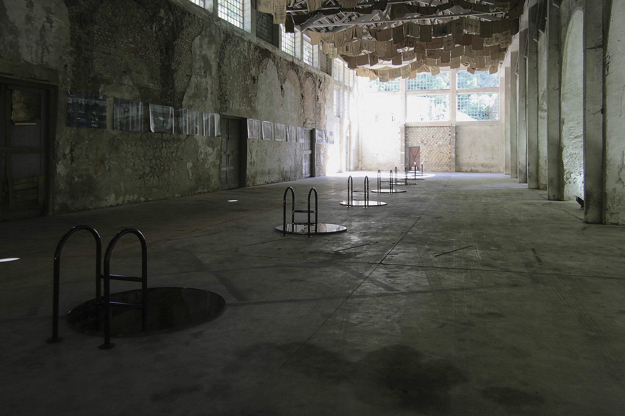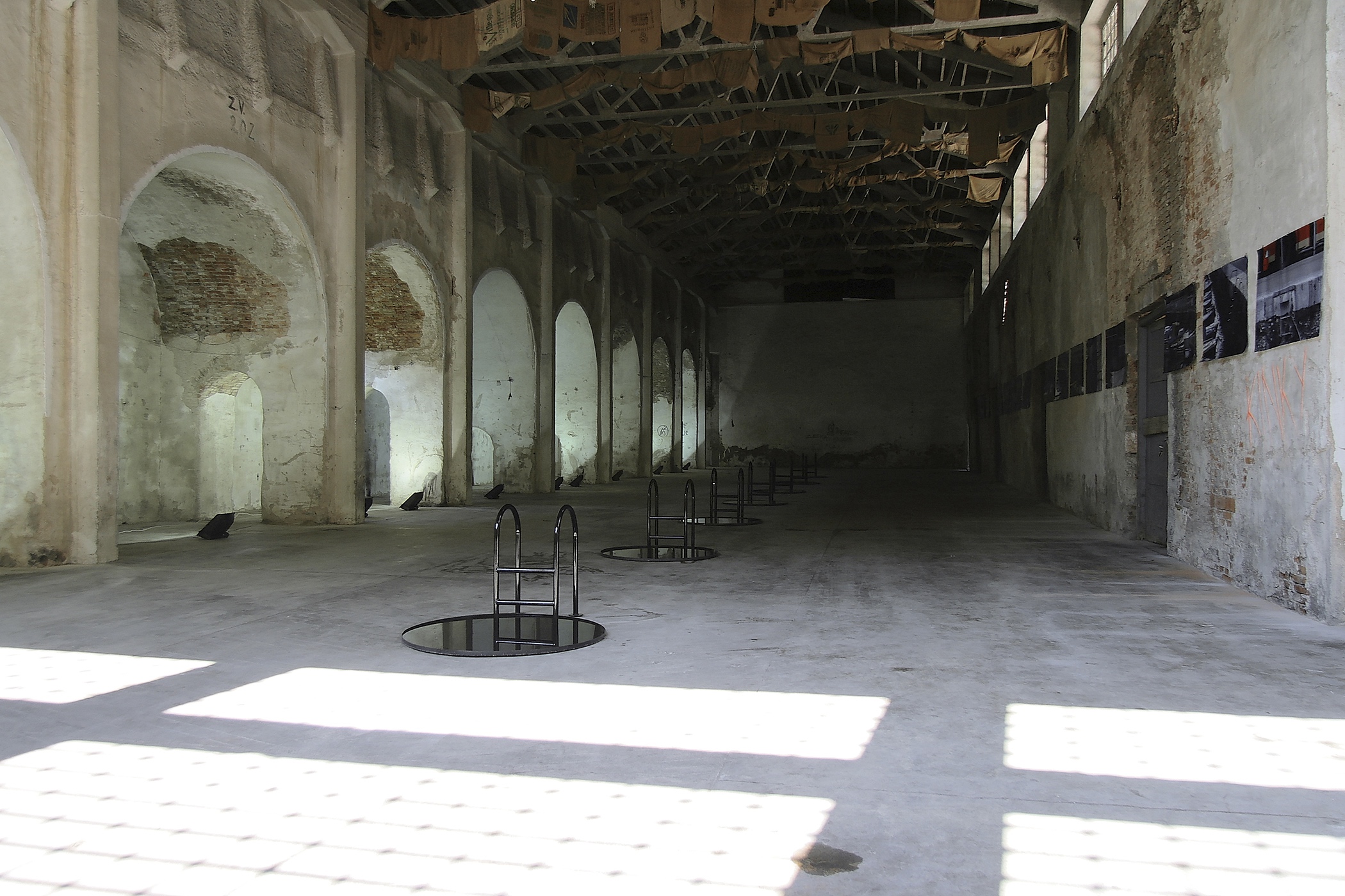 Through the heterogeneous urban aspects and social constructions between reality and fiction, we come to the latest work of Viktor Popović, a prominent author of a younger generation. The site-specific looks industrially beautiful. By its spatial, visual, and tactile quality, it fits perfectly into the industrial setting of the former Paper Factory, into the huge, cold, empty hall of