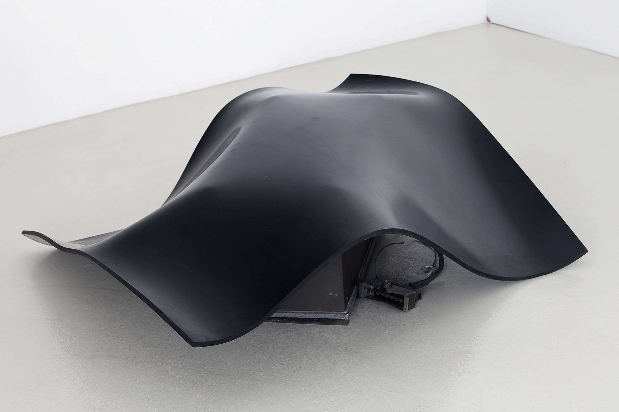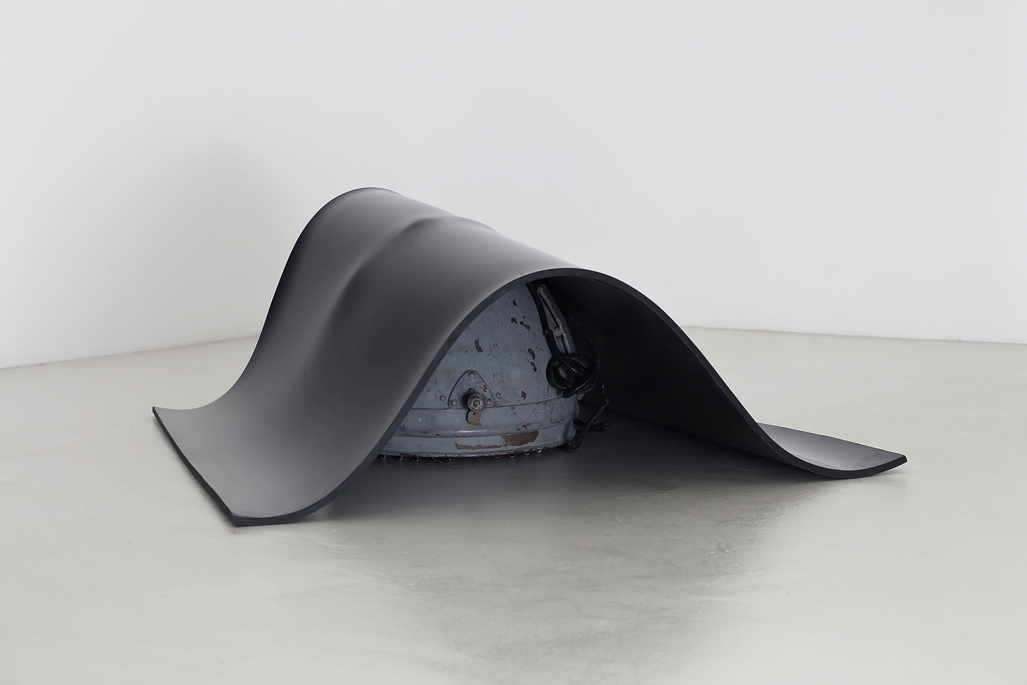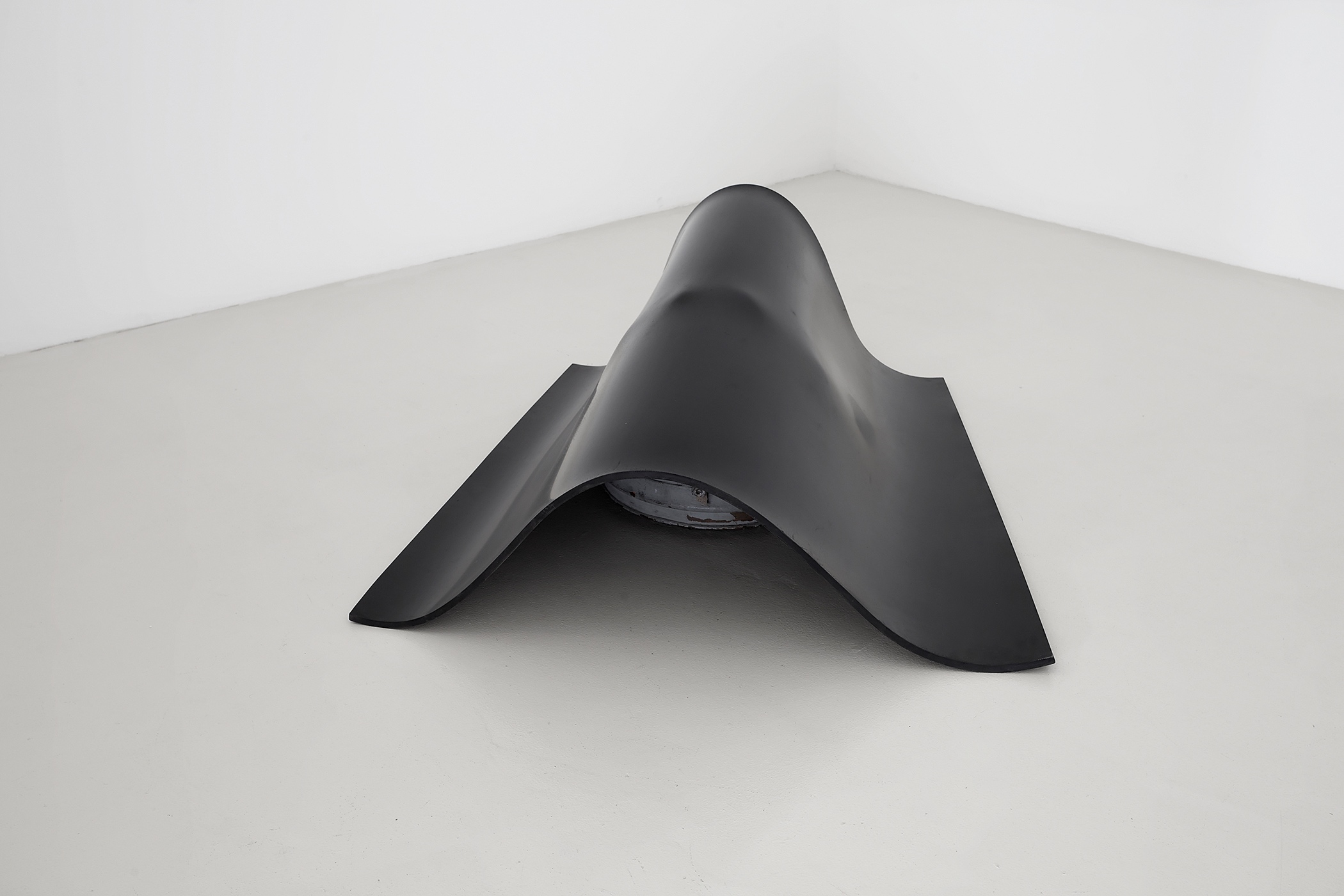 Untitled, 2010) have an outspokenly paradoxical character. By selecting materials (rubber, lead) that are visually close to the original object (metal cage) or phenomenon (human shadow), the artist has provoked a detachment in perception. The expected hardness of a cage has been replaced through the softness and pliability of rubber, whereas the shadow, essentially immaterial and changeable, has been