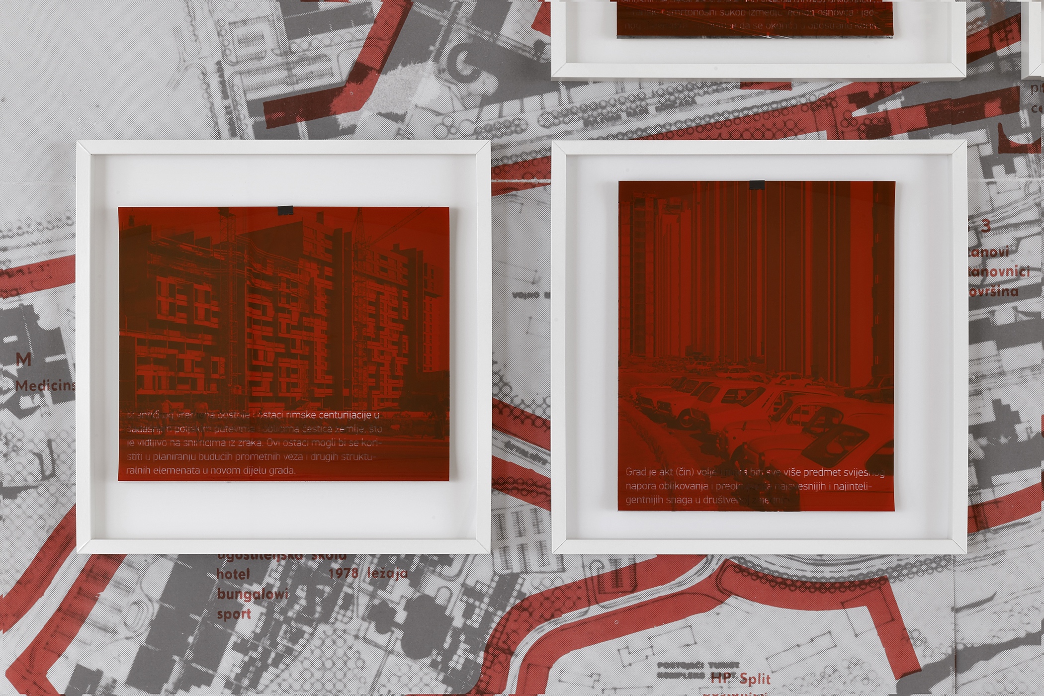 1 vrlo jasno i jezgrovito uočava motivaciju i način umjetnikova bavljenja ovom temom: „Ova tema čini se razložna uslijed trenutnog porasta interesa za navedeno razdoblje zbog međunarodne reevaluacije modernizma s područja tadašnje Jugoslavije, no razlozi Popovićevog interesa za navedeno razdoblje ipak su nešto složeniji. S jedne je strane Split 3 prostor njegova odrastanja te u tom slučaju memorija prostora ima vrlo osoban karakter. S druge je strane arhitektura visoke moderne potpuno u skladu s referentnim poljem njegovog interesa u području umjetnosti. No, dok razvoj umjetničke strategije u autoreferencijalnom prostoru umjetnosti možemo smatrati definiranjem vrlo osobnog umjetničkog identiteta, istraživanje živog urbanističkog prostora neminovno dobiva širi društveni kontekst. Odluka da za rad koristi primarno arhivske materijale u Popovićevom slučaju govori o kritičkom otklonu od sadašnjeg stanja urbanističkog kaosa i podsjećanju na vrijednosti po kojima su ti prostori izvorno mišljeni.” Izloženi Popovićevi radovi temelje se na umjetničkoj aproprijaciji crno-bijelih fotografija splitskog fotografa Zvonimira Buljevića, tehničkog suradnika na projektu Split 3. Njihova dokumentarna vrijednost izbija kroz prikaz izvornog stanja masovne stambene izgradnje na području kvartova Trstenika i Smrdečca, izravno posredujući osnovnu misao arhitektonskog promišljanja. Na tragu prokušane vlastite umjetničke strategije, Popović stvara „hibridne radove na razmeđi fotografije, reljefa i objekta”. Na spomenute fotografije on „intervenira apliciranjem industrijskih filtera za korekciju boje perforiranih segmentima teksta iz dokumenta iz 1969. godine ‘Split 3: Osnovno urbanističko rješenje’ koji je izradio Urbanistički institut SR Slovenije”. Radi se zapravo o dvostruko artikuliranom kritičkom stavu izraženom kroz korištenje kompatibilnih komunikacijskih sustava slike i jezika. Takvo ponavljanje ističe njegovu važnost u obzoru shvaćanja ove umjetničke cjeline. Babić poentira: „Nerijetko uzvišen, idealistički jezik tako nas podsjeća da je ‘grad akt (čin) volje i mora biti sve više predmet svjesnog napora oblikovanja i preokupacija najsvjesnijih i najinteligentnijih snaga u društvenoj zajednici.’”