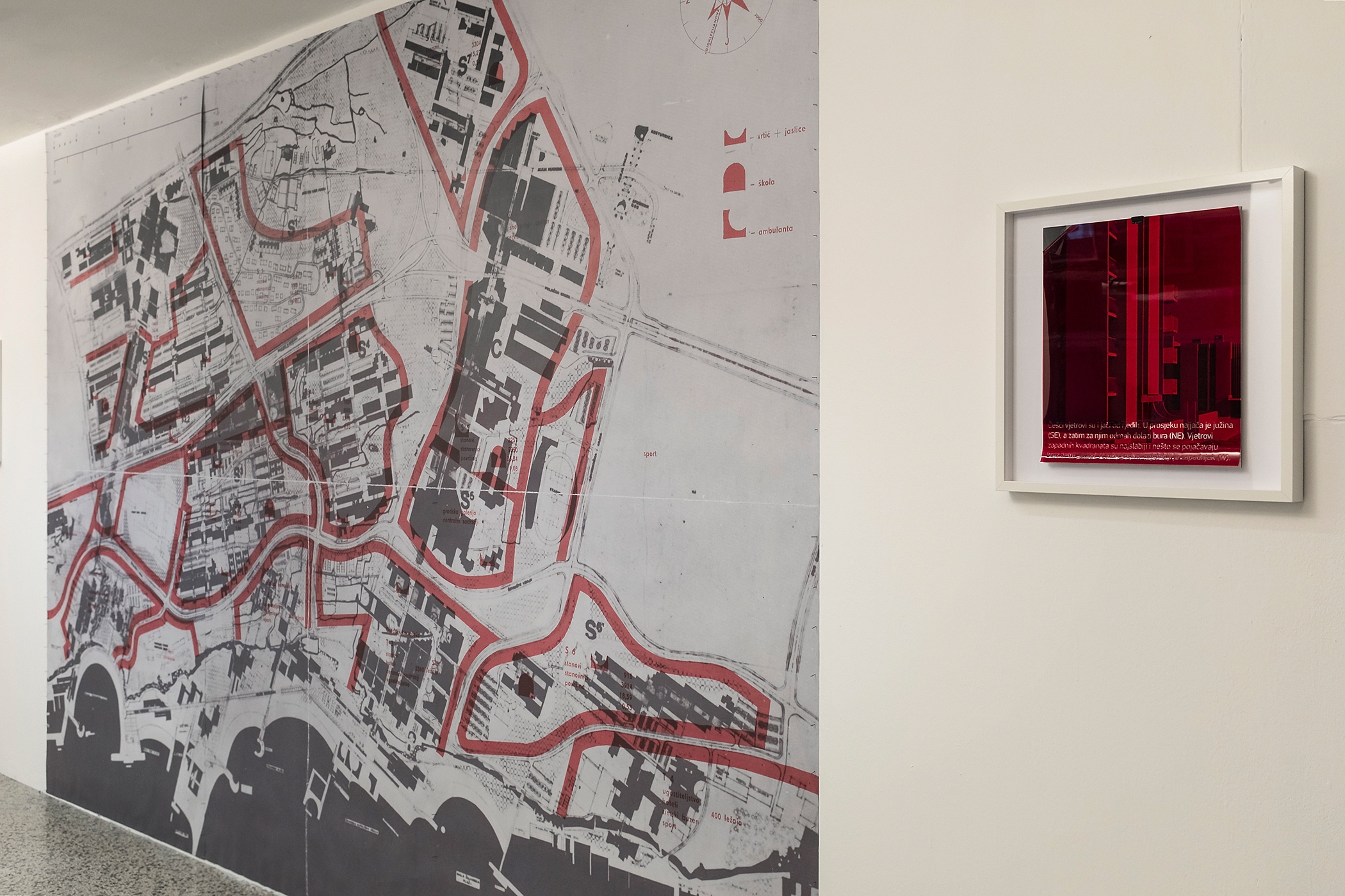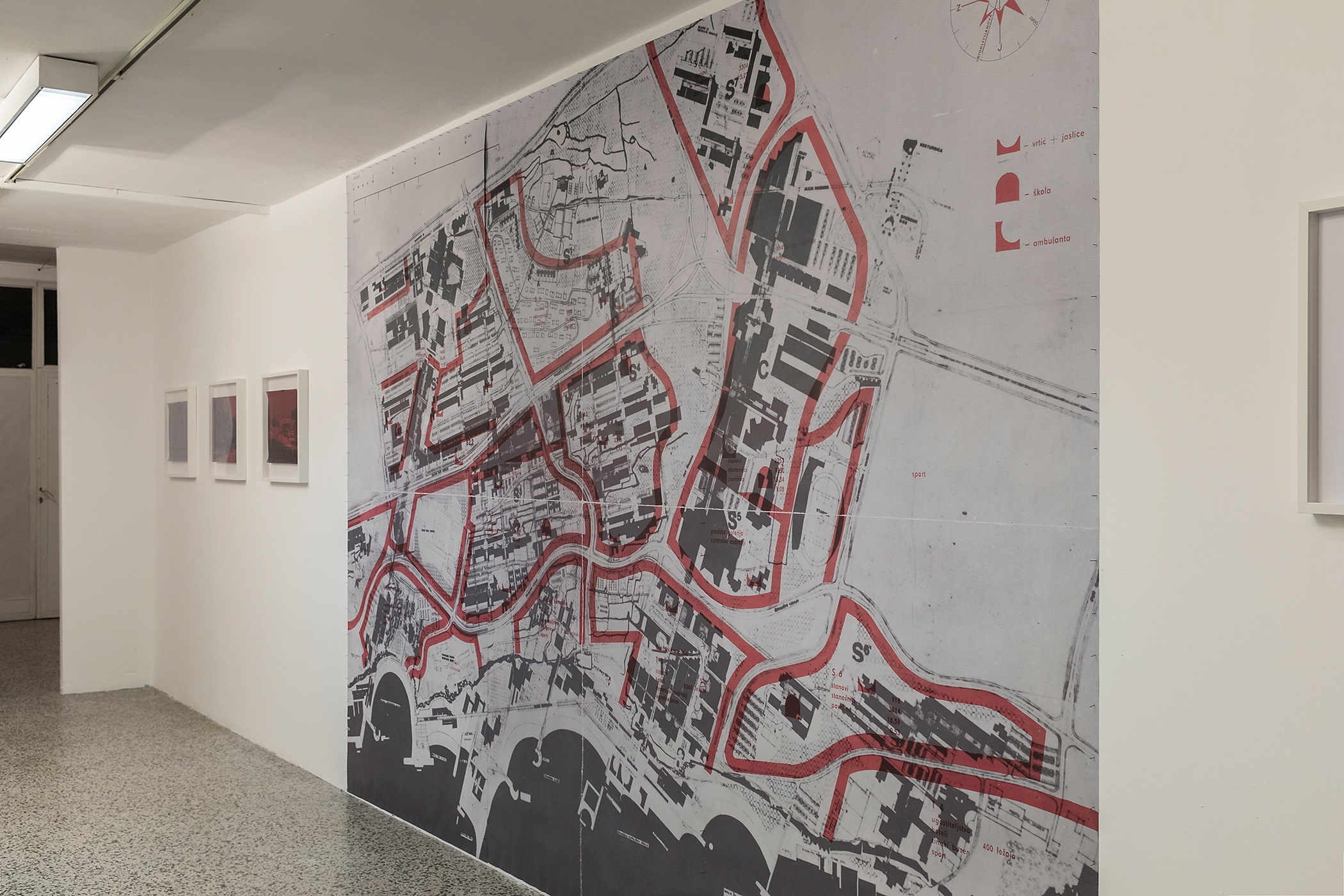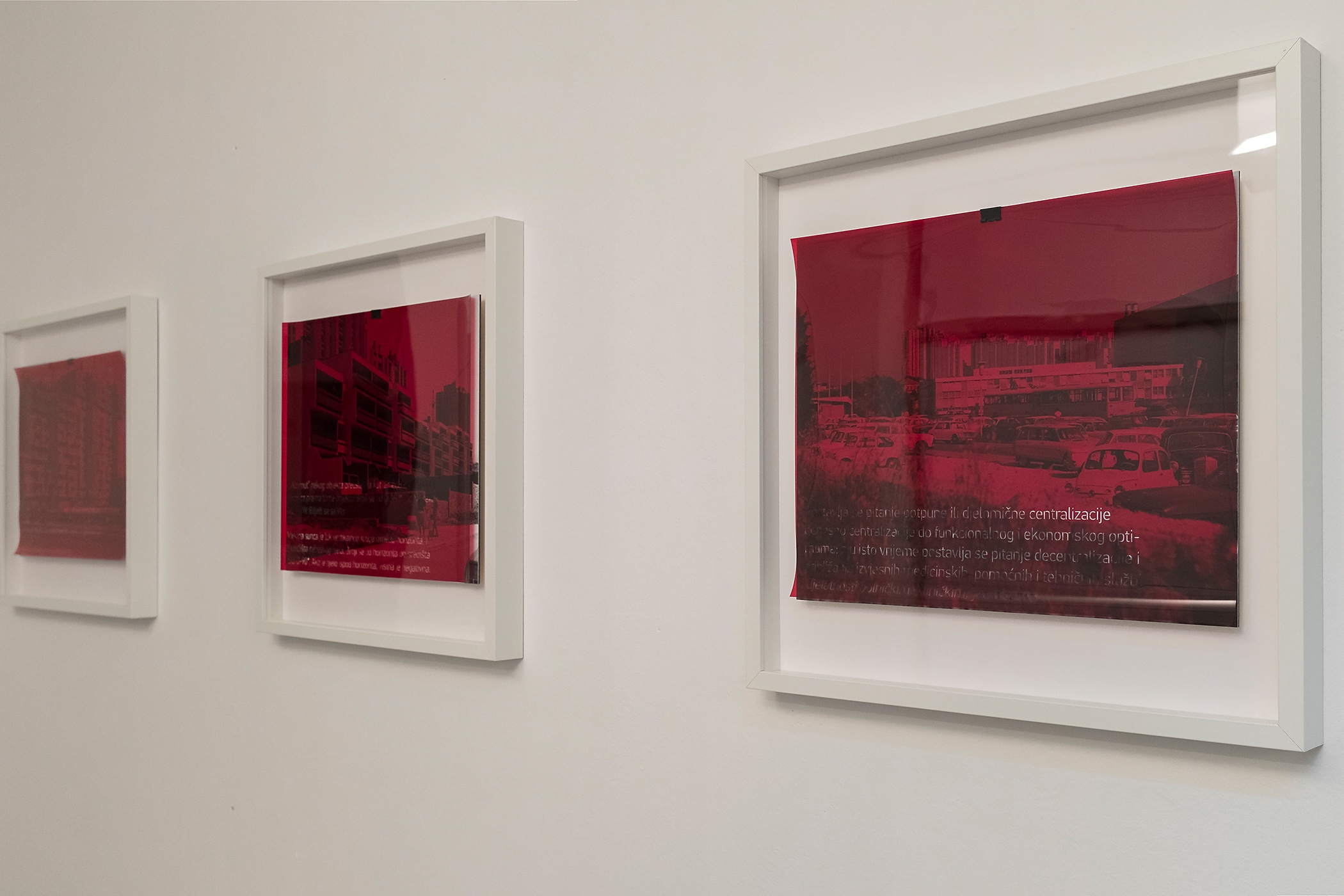 Arhivska podloga za najnovije radove izložene u Galeriji AŽ su fotografije poznatog splitskog fotografa Zvonimira Buljevića koji je kao tehnički suradnik bio uključen u projekt Splita 3. Serija crno-bijelih fotografija u stvari predstavlja fotografsku šetnju po netom izgrađenim predjelima kvartova Trstenik i Smrdečac i prikazuje neke od najpoznatijih arhitektonskih ostvarenja masovne stambene izgradnje na tom području. S obzirom da su zgrade snimljene odmah po završetku izgradnje, fasade još uvijek ne otkrivaju dinamiku življenja i u tom se smislu njihove plohe i volumeni mogu jasno iščitati i prenijeti osnovnu misao arhitektonskog promišljanja. Istovremeno, Buljević je kroz dinamične kadrove koji prikazuju odnos suvremene arhitekture i mediteranskog pejzaža vrlo jasno prikazao proces u kojemu grad preuzima područje nekadašnjih vinograda i polja. Popović već razrađenom umjetničkom strategijom formira hibridne radove na razmeđi između fotografije, reljefa i objekta. Na opisane fotografije on intervenira apliciranjem industrijskih filtera za korekciju boje koji su perforirani segmentima teksta iz dokumenta iz 1969. godine „Split 3: Osnovno urbanističko rješenje” koji je izradio Urbanistički institut SR Slovenije. Ovaj opsežan dokument donosi tehničke pojedinosti projekta, ali i ono što je u našem kontekstu važnije, temeljne ideje koje su odredile projekt takvim kakav je bio. Nerijetko uzvišen, idealistički jezik tako nas podsjeća da je „grad akt (čin) volje i mora biti sve više predmet svjesnog napora oblikovanja i preokupacija najsvjesnijih i najinteligentnijih snaga u društvenoj zajednici.” Stav kojeg se u današnjem vremenu izuzetno važno prisjetiti.